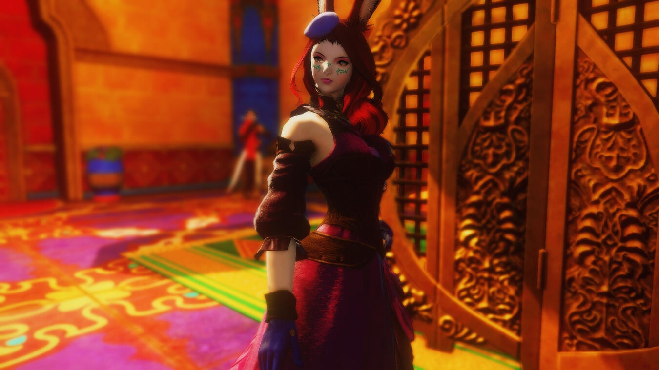 Pre-established Connection(Whisper me if interested): One might know Velvet if they're the type who does research or is involved in trading/travelling along the Bounty. If you've been to Radz-at-Han and came to offer mercantile business, there's a good chance you ran into Velvet.Radz-at-Han/Thavnair: Velvet has many contacts in Radz-at-Han and Thavnair as a whole(with even a few in Garlemald). Mainly her business contacts are mercantile princes who are always looking to export their wares. Those who are looking for Thavnairian goods may have come across Velvet as a possible contact.Researcher: As one who is curious about most things, anyone who would consider themselves a historian or researcher may have run into Velvet. Her specific fields of study are aetherical(specializing in personal aether that revolves around the utilization of Red Magic), history and culture, and most recently the void.Alchemists from all over(though mostly Radz-at-Han), gleaners and researchers from Sharlayan, aetherical researchers from Eorzea and Orthard, and historians/storytellers from all walks of life may have crossed paths with her.Socialite/Criminal: Though carrying herself with an air of nobility, Velvet often deals with people on the lower end of most social structures. This has her dealing with many ne'er do wells and darker individuals, known for interacting with such folk to the point where her name has been whispered by a few when searching for contacts or information.She does have connections to those in high society in Radz-at-Han, but such connections do not often give her any status outside of such.